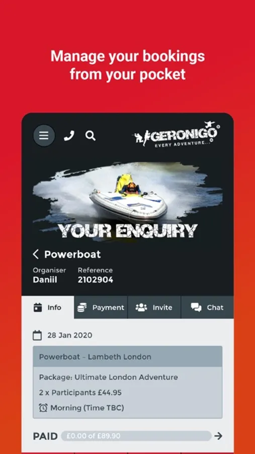 Making a booking and managing your event is made simple. Every booking is allocated a dedicated and experienced real life activity advisor, responsible for ensuring your booking runs smoothly. And with access to our in-app bookings management tools managing your booking has never been simpler: