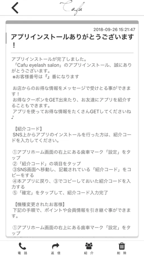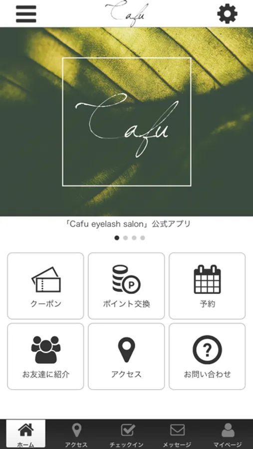 このアプリでは、Cafuの最新情報の受け取りや便利な機能を使う事ができます。