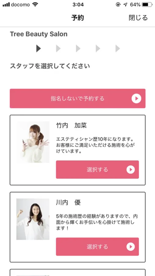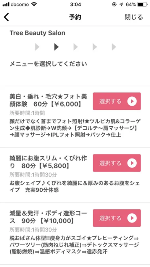◇2◇エステ予約のためのメニュー選択ができる