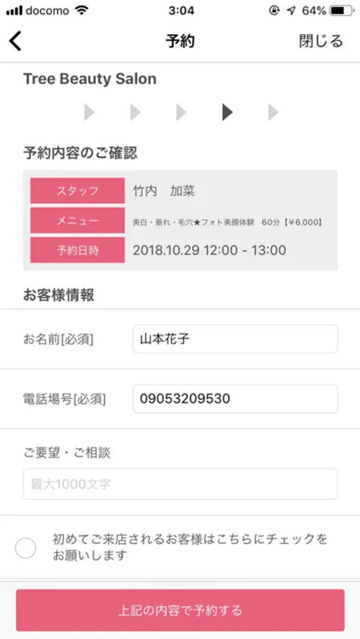 ◇1◇エステ予約でサロンの予約空き状況が確認できる