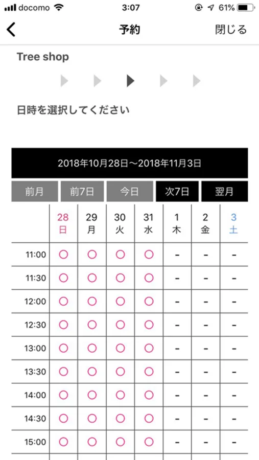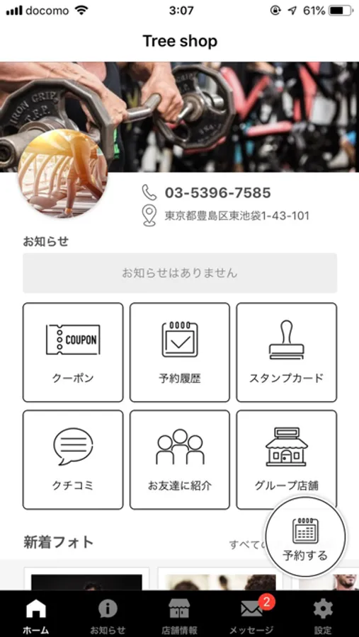 ◇1◇あなたが通うお店(パーソナルジム、飲食店、教室等)の予約空き状況が確認できる