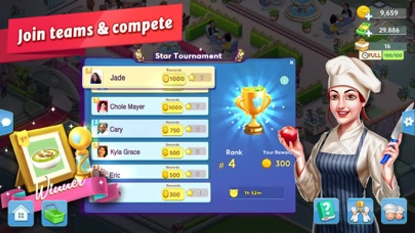 • CHEF MASTERS – Compete with real chefs in skill-based tournaments to top the leaderboard