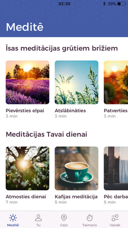 Lietotne piedāvā apgūt un praktizēt apzinātības meditācijas, kuras varēsi lietot patstāvīgi ikvienā savā dienas brīdī un Tevi pavadīs profesionāļu veidoti ceļveži meditācijas praksēm latviešu valodā.