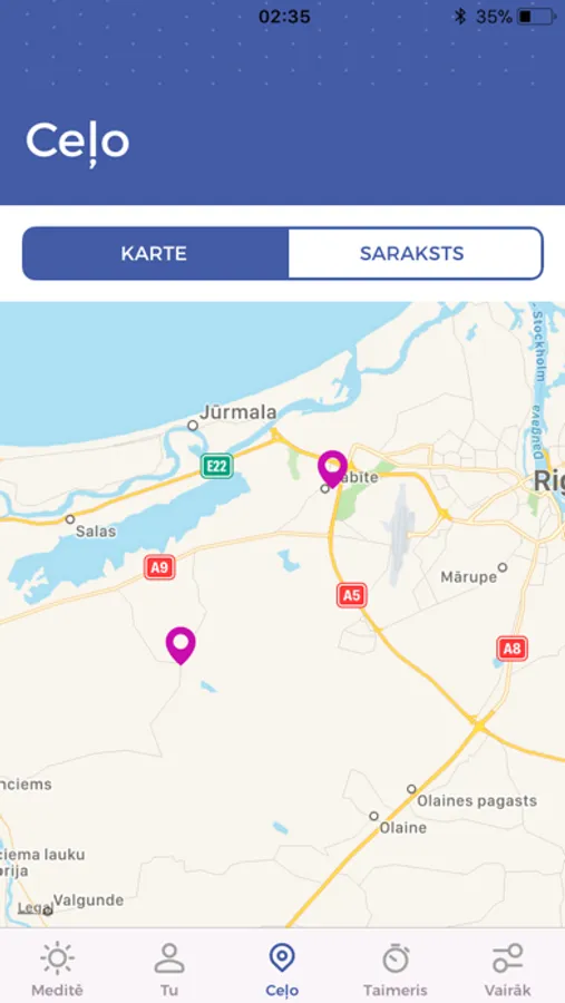 Lietotne piedāva arī apzinātu ceļošanu, lai ar atvērtu sirdi un vērojošu prātu apceļojot Latviju, Tu varētu ieraudzīt tik daudz kā jauna un arī sajusties labāk. Visi ceļojumu galamērķi ir papildināti ar apzinātības vingrinājumiem dabas taku un sevis izzināšanai, sākotnēji Pierīgā un vēlāk arī visā Latvijā.