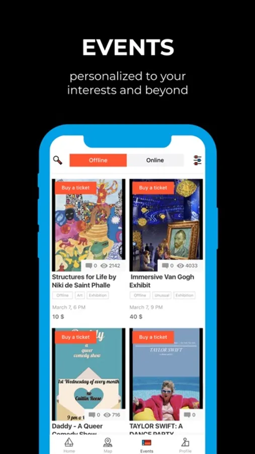 Kaver is not only about well known theaters, shows and exhibitions, it's a place to discover unique experiences. Our list of events and broadcasts cannot be found in other apps!