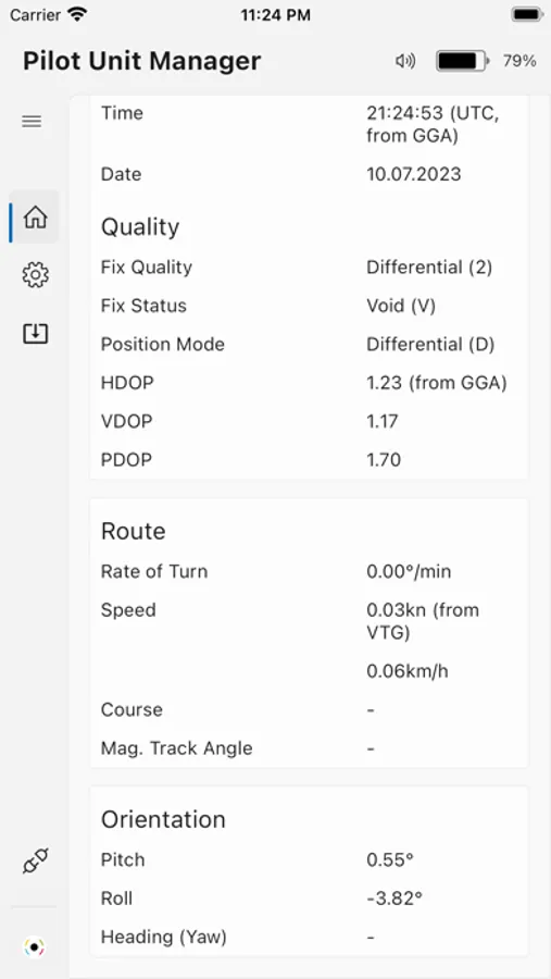 - verify sensor output (rate of turn, heading, roll/pitch, GPS, AIS status)