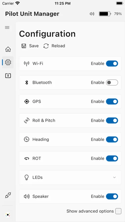 - enable the sensors you need and disable others to optimize your Pilot Units' battery life.