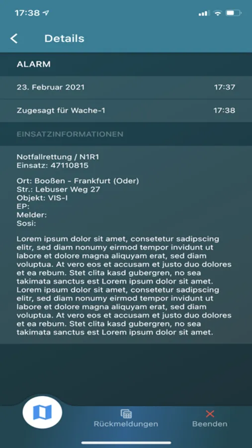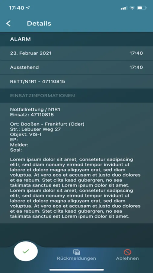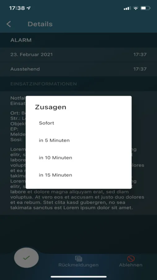 Registrierte Einsatzkräfte erhalten zusätzlich Alarmierungsnachrichten direkt auf Ihr Smartphone und können gleichzeitig eine Rückmeldung über Ihre Einsatzbereitschaft an die Wache senden. Zusätzlich werden Einsatzinformationen und ein Routing zum Einsatzort angezeigt. Die Anbindung an die Wache erfolgt pro Einsatzkraft und Smartphone.