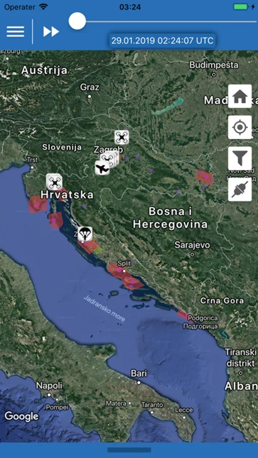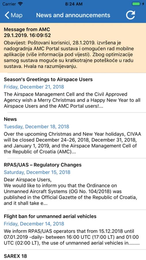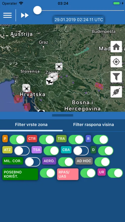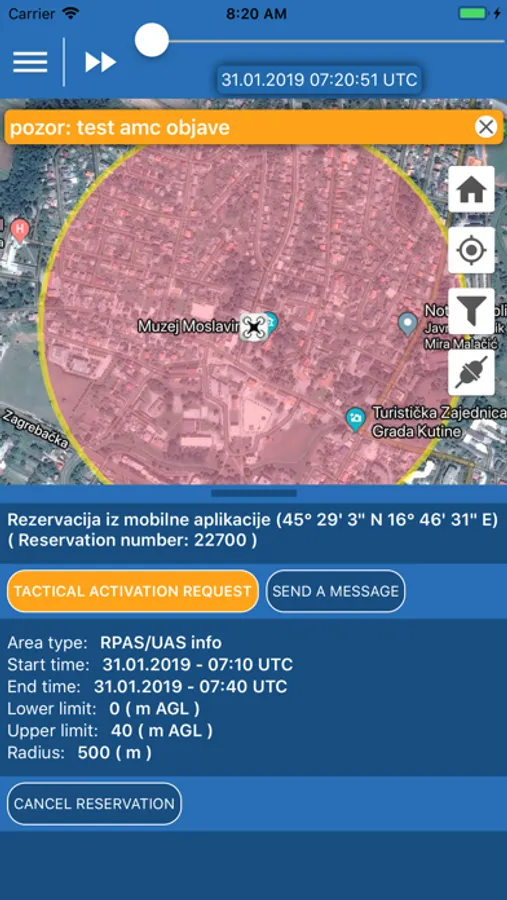 Mobile application AMC Portal Mobile is part of the AMC Air Navigation Management web application – AMC Portal. In addition to displaying the status of the airspace, the mobile application allows registered users of the AMC Portal web site to use an automated airspace reservation for unmanned aerial vehicles (Ordinance on Airspace Management (Official Gazette No. 20/2023)).