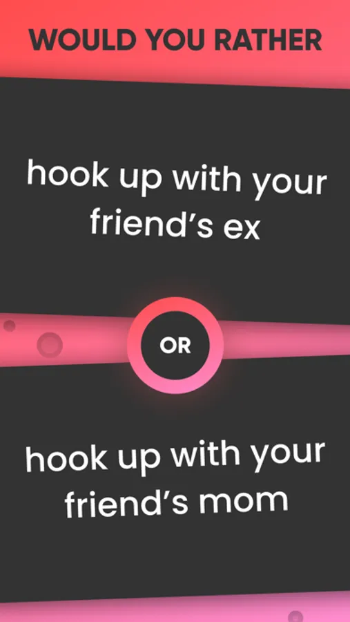 Would you rather is a casual trivia game where you can get to know your friends better while making very hard choices the whole night.