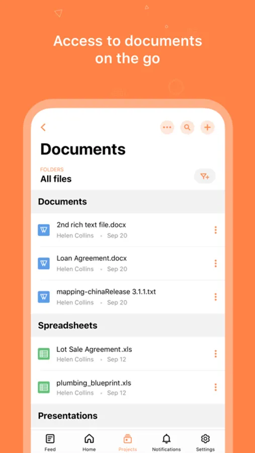 - Take to Feeds to discuss details, or post important updates about the progress of your project.