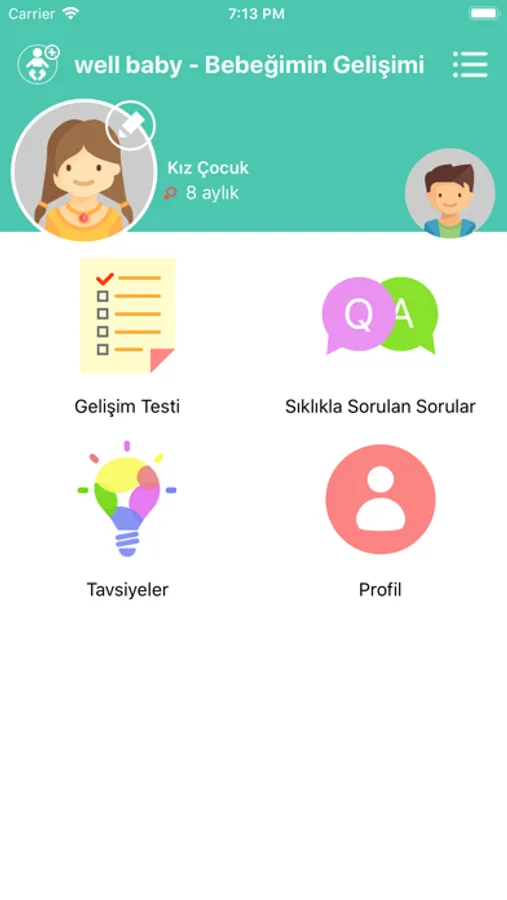 well baby uygulaması 6-24 ay arası bebeğinizin gelişimini değerlendiren bir gelişim tarama testi, eğitim programı ve yaş dönemine uygun öneriler içerir.