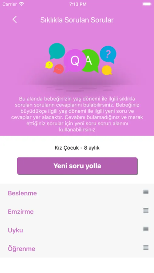 well baby uygulaması içerisinde, bebeğinizin gelişimi ile ilgili Gelişim Psikoloğu Nilcan Kuleli Sertgil’ e sorular sorabilir ve size özel cevaplar alabilirsiniz.