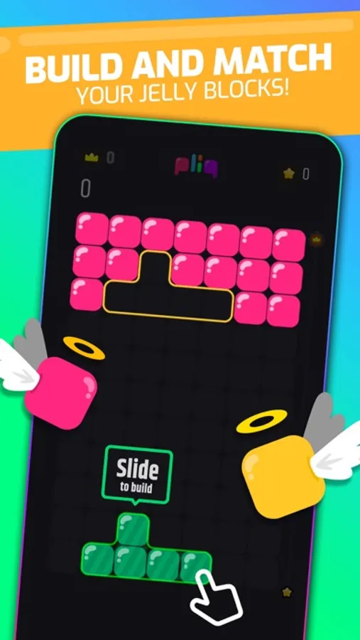 There’s just one rule; observe the descending block, solve the pattern, build your own one, match it to clean your board and keep building your perfect blocks to vanish those colorful jelly blocks to rock your score and get to the top!