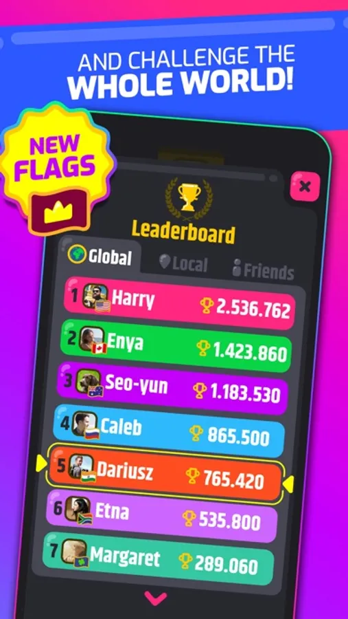 - Beside your Facebook friends’ leaderboard you can compete in the global and local rankings.
