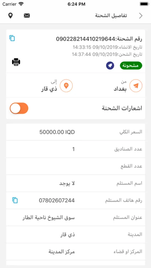 * توفير خدمة تتبع البضاعة عن طريق التطبيق.