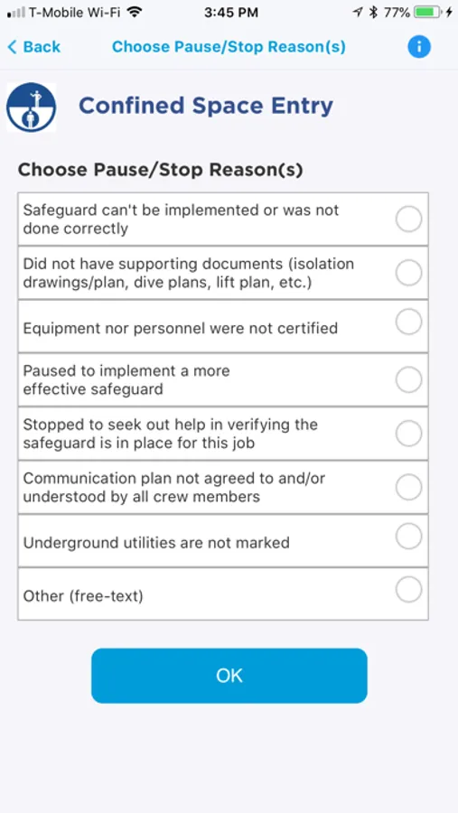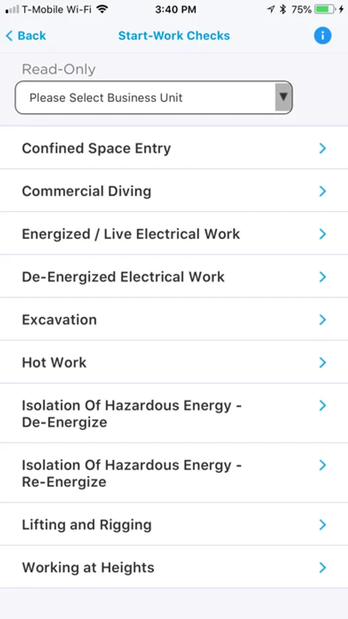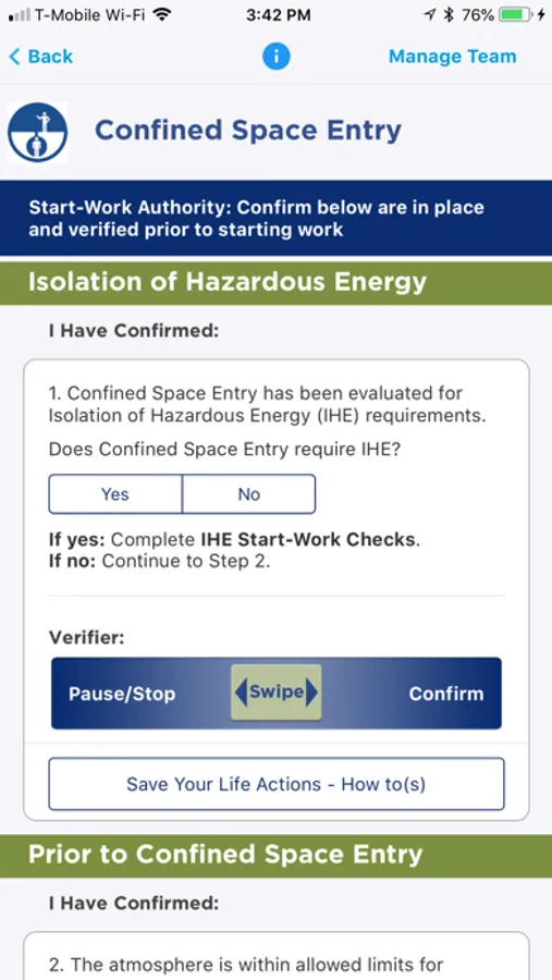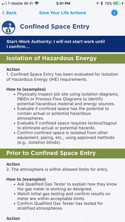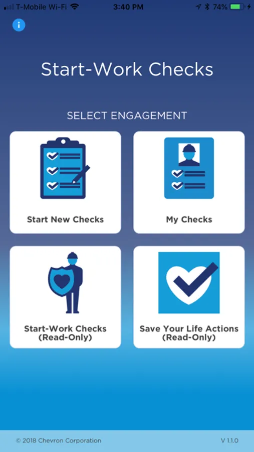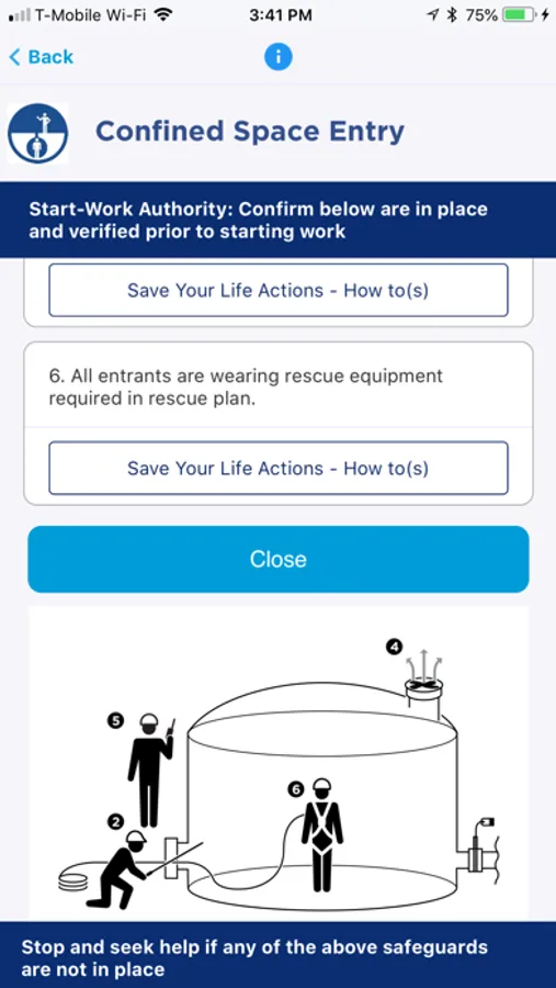 The Start-Work Checks App is a mobile verification tool designed to help field workers confirm appropriate safeguards are in place and “Save Your Life Actions” are completed immediately prior to the start of high work activities. The app supports overall efforts to eliminate serious injuries and prevent work site fatalities.