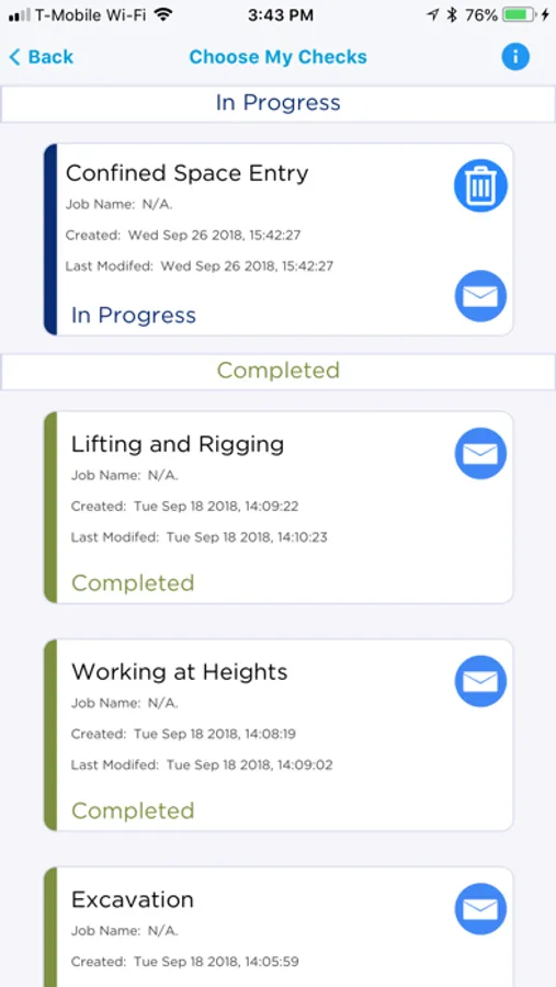 •In-Progress Start-Work Checks that can be re-opened and continued, deleted, or emailed