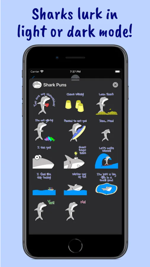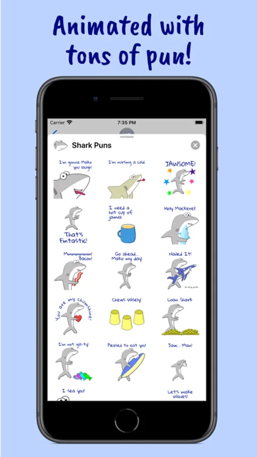 The Shark Puns sticker collection is a set of fun, silly and punny stickers for iMessage. These fintastic stickers are sure to bring a lot of chum to your iMessage conversations!