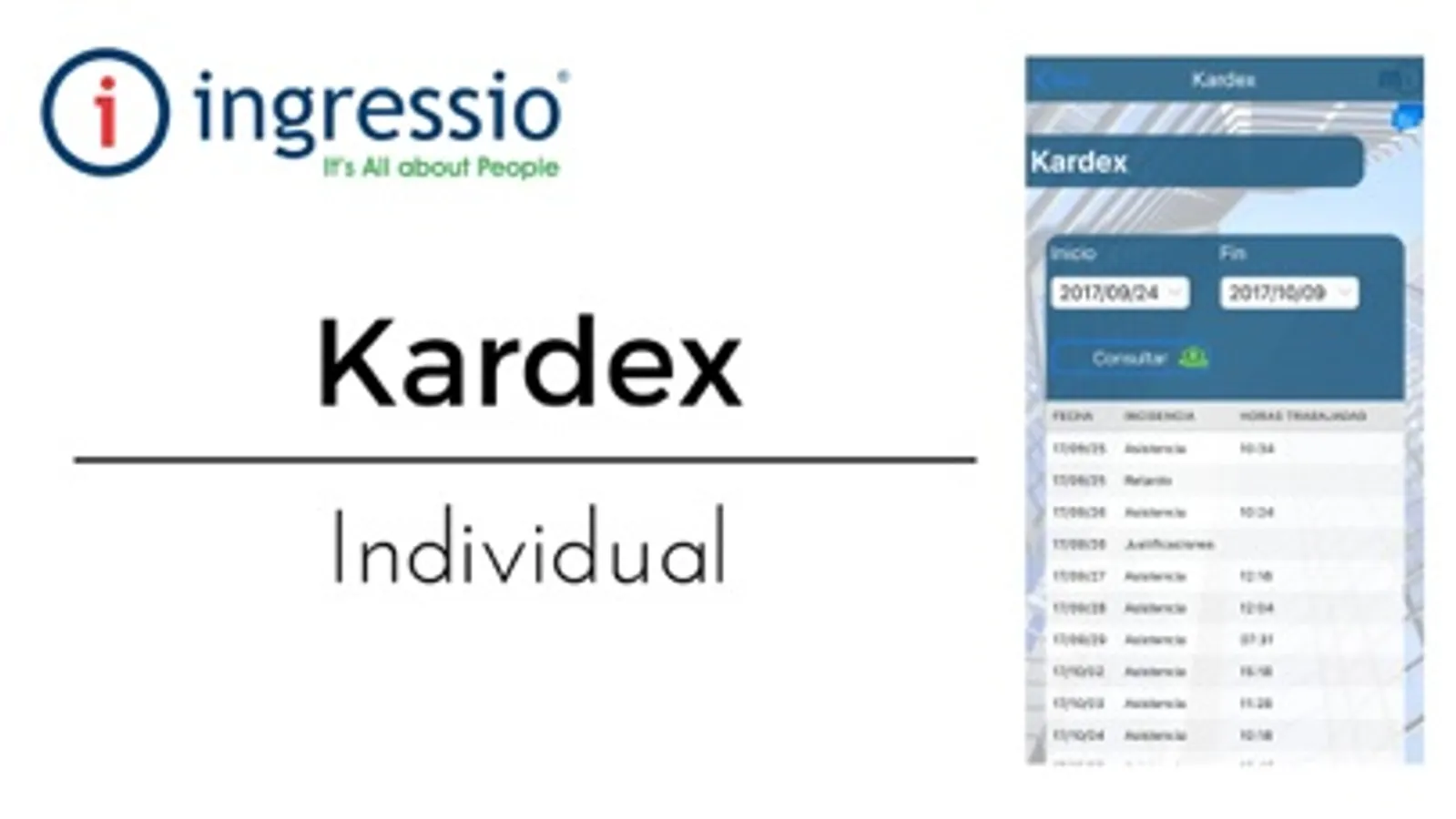 Mi Ingressio te permite consultar tu propio Kardex mostrando las incidencias de tu jornada laboral.