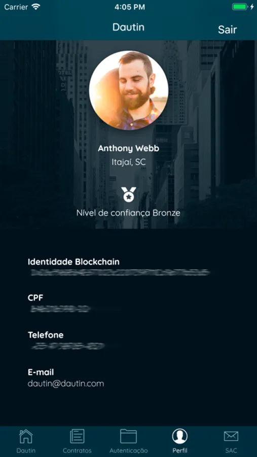 Para acessar o aplicativo Dautin você já precisa ter um pré-cadastro em nosso sistema online e para utilizar todas as funções é necessário que você já tenha gerado sua identidade blockchain conosco. Ficou com dúvidas? Entre em contato com nosso suporte que iremos lhe dar toda a atenção necessária.
