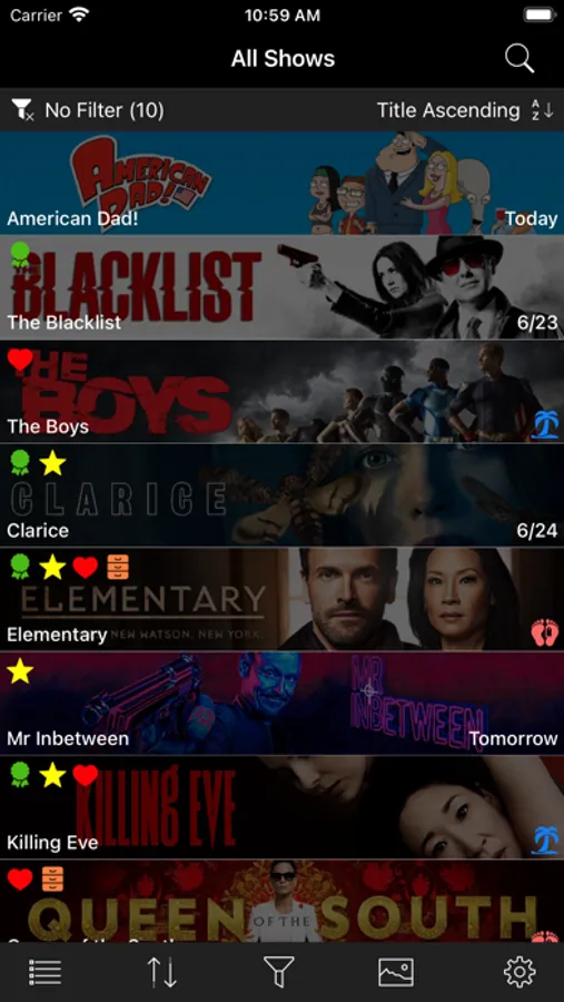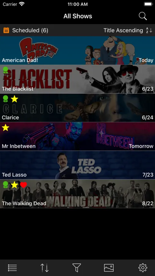 - Sort the shows in your working list. Make choice by tapping the filter button in the toolbar and selecting from popup menu: