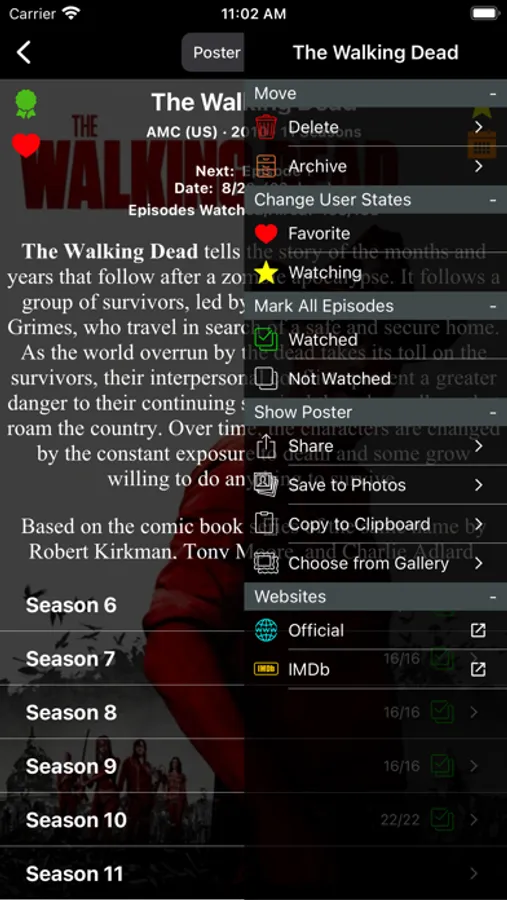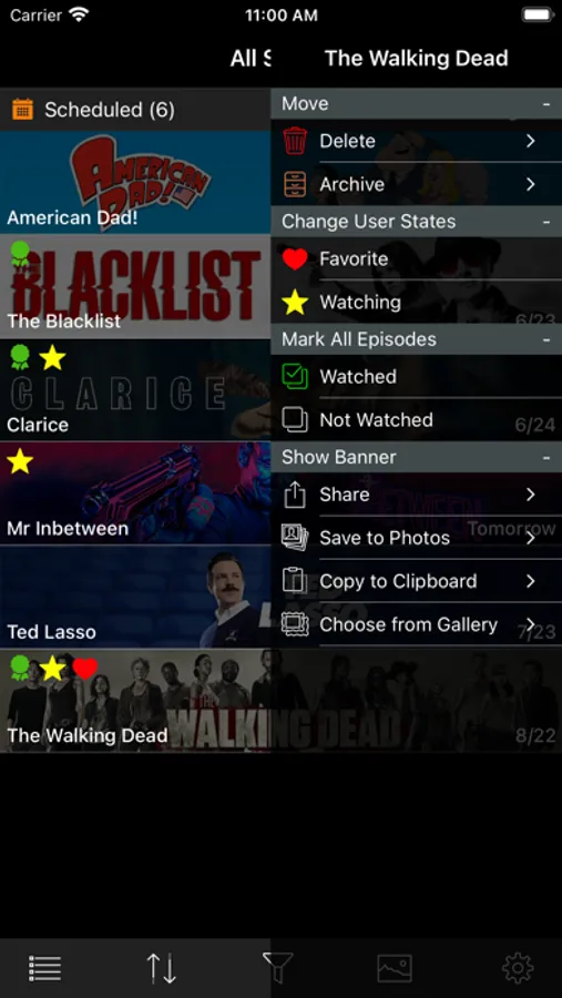 - Mark a show as a Favorite or as a show that is being Actively Watched.