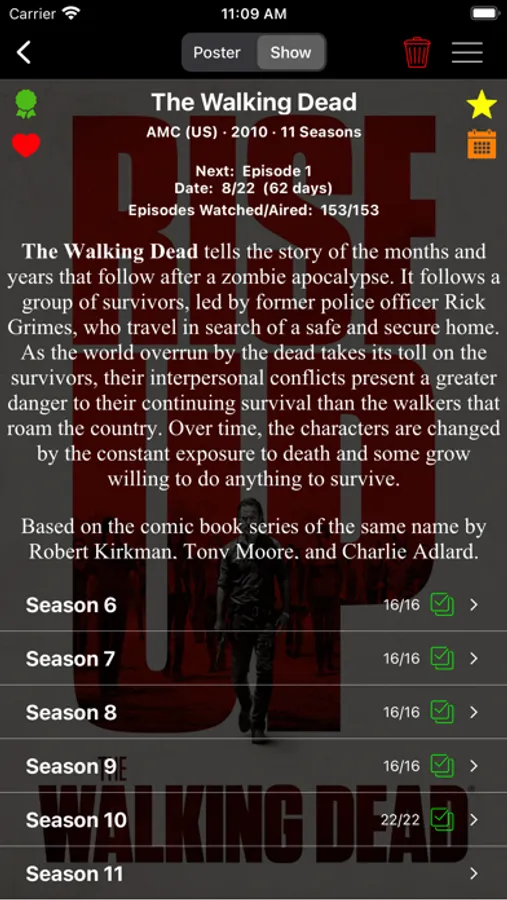 - Mark all the episodes of a show as watched or unwatched with one tap.