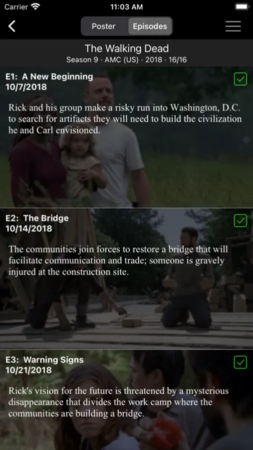 - Mark all the episodes of a single season as watched or unwatched with one tap.