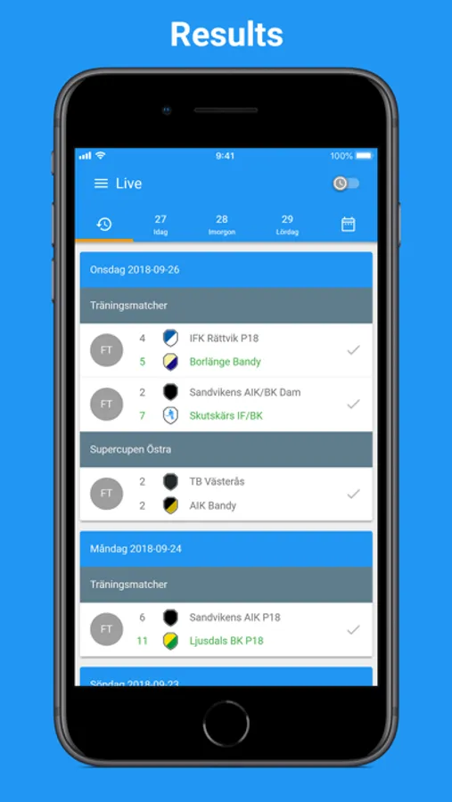 Livescore for Swedish bandy.