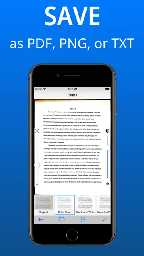 Basic Scan is a simple way to capture and share your documents, letters, notes, business cards, receipts, sketches, homework, and more. Easily convert pictures to scanner quality images or PDFs, and extract text using OCR (optical character recognition) to search the document. Export the results as .png, .pdf, or .txt - try it out now!