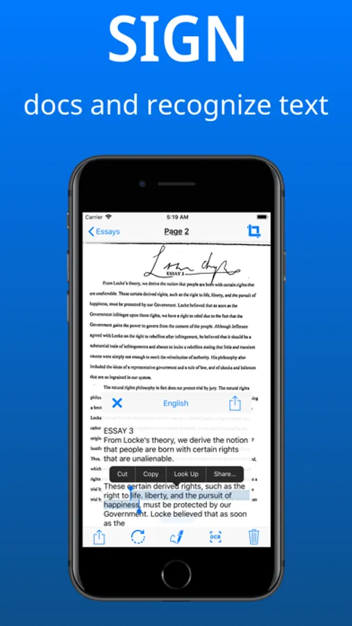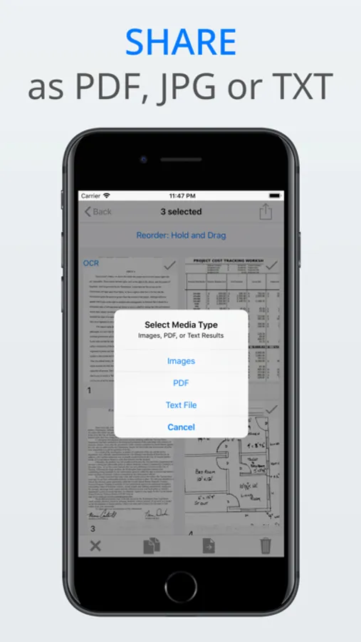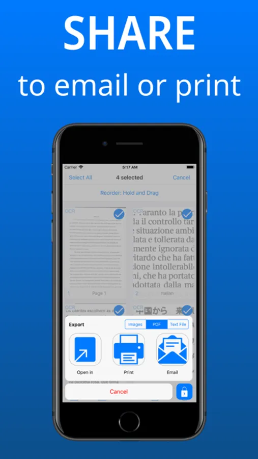* Share selected documents or pages as images, PDFs, or OCR text.
