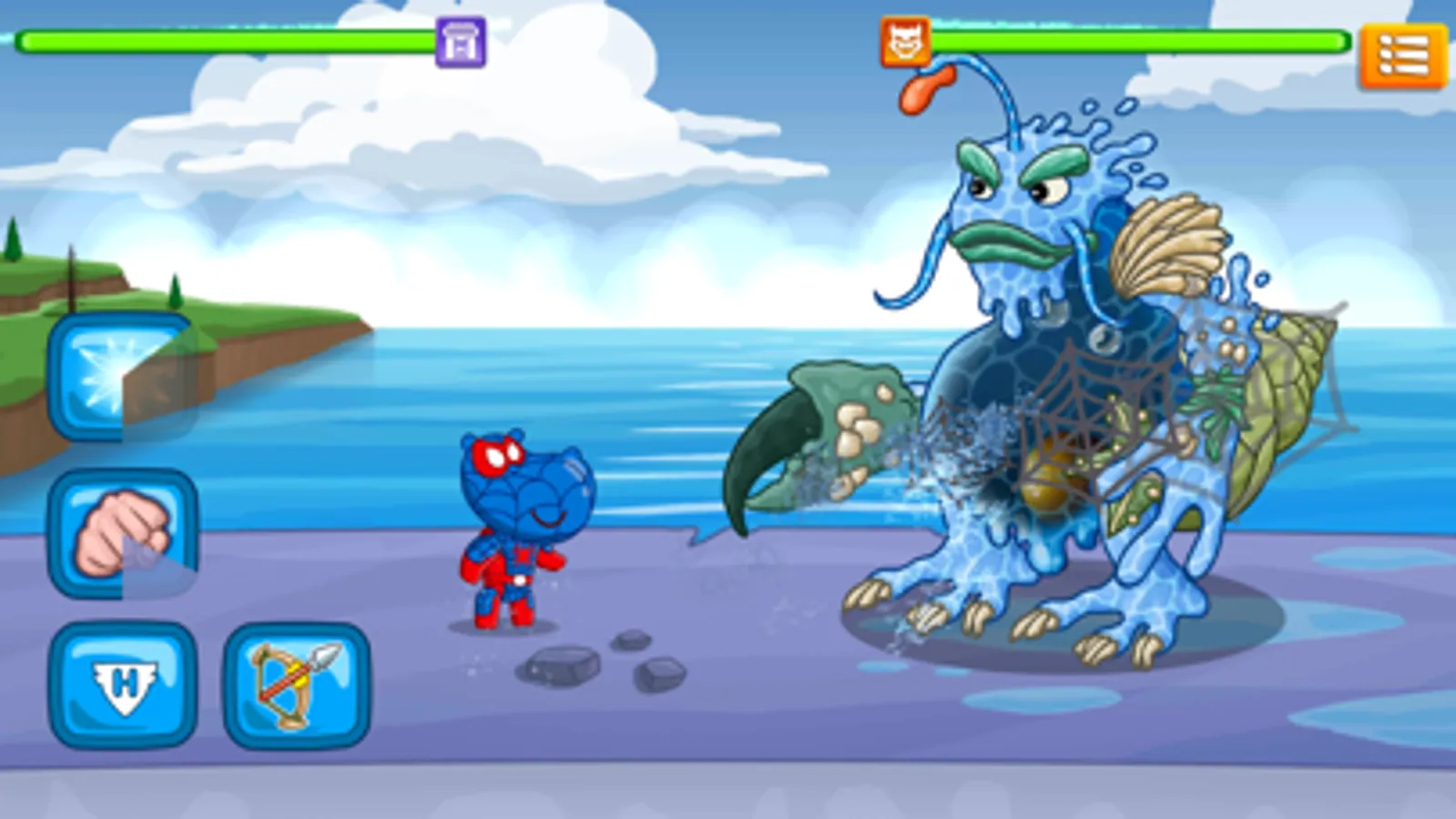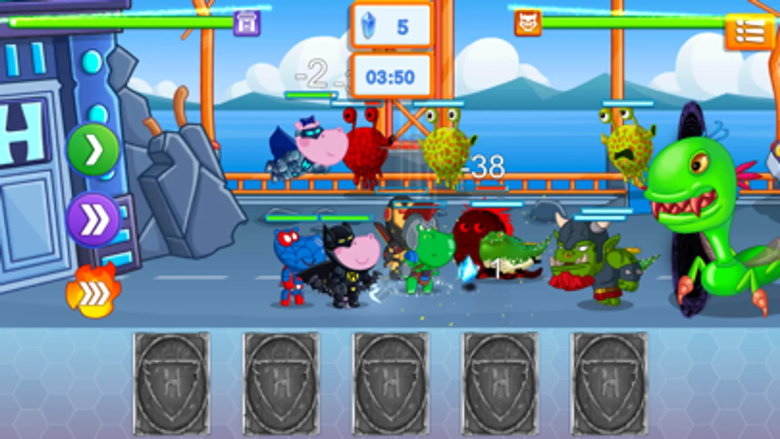 Hippo town is attacked by evil forces. Who could help its citizens? This is the task for the team of superherous. Choose what superhero you would like to be today and let the battle start! Kill all the criminals and save the citizens. Be a real superhero!