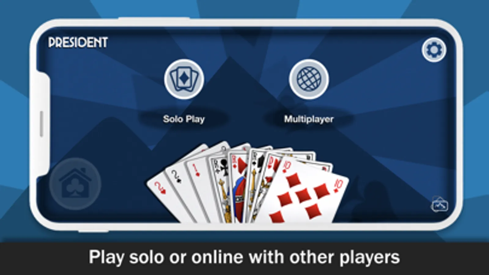 Play President game with 3, 4 and up to 7 players with President. Play alone against players controlled by a high level artificial intelligence with a realistic behavior, or compare yourself with other players from around the world.