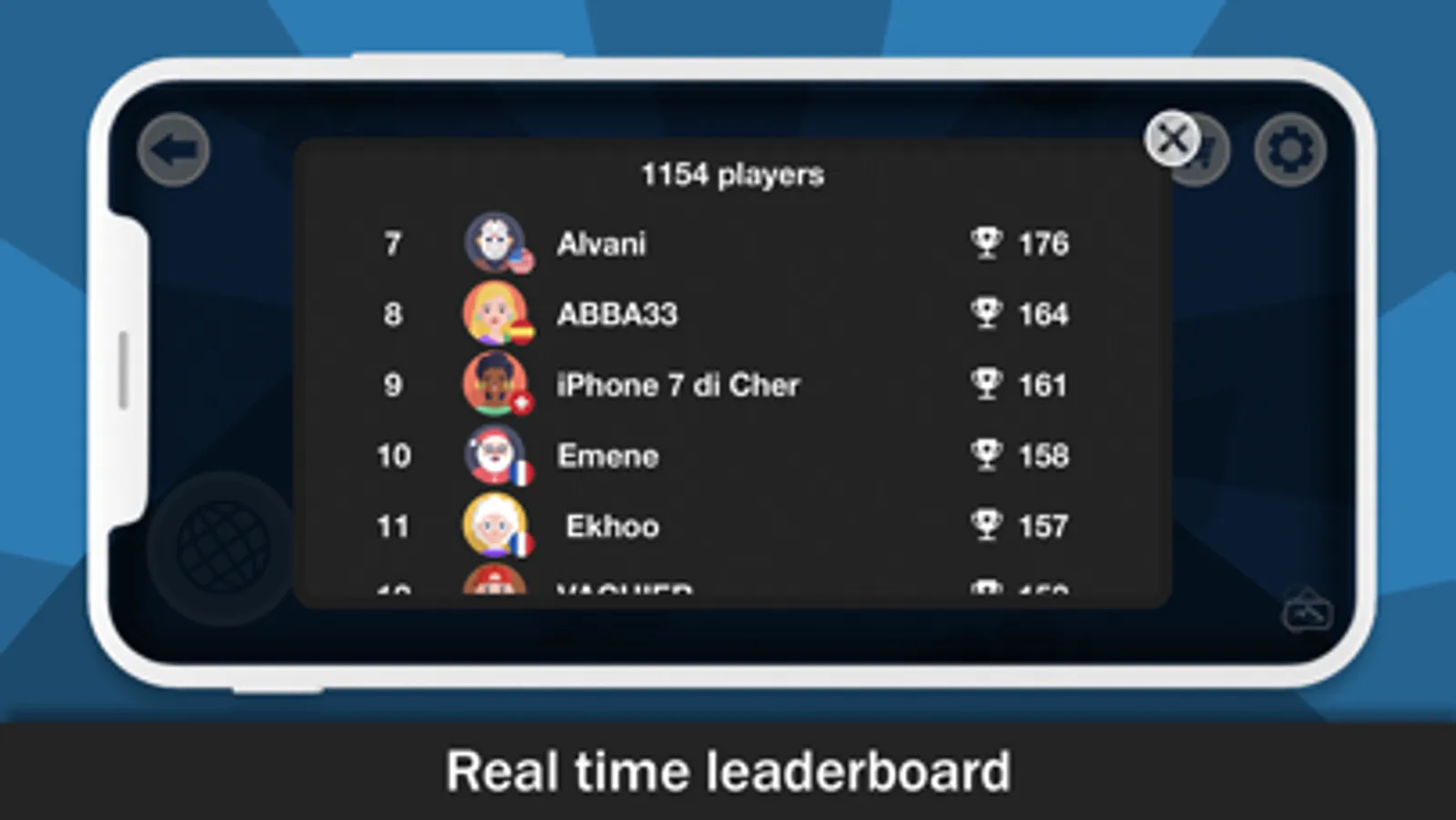 - play online with real players and see your rank in the leaderboard