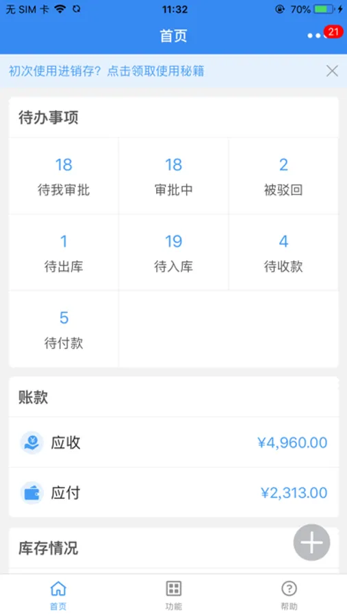 爱客进销存是上海微问家信息技术有限公司旗下产品。面向中小微企业,解决进销存业务管理、库存管理、资金账目管理的难题,让业务井井有条之余还致力于提高工作效率及企业价值。