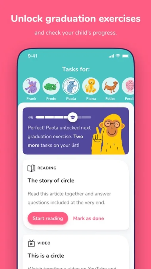 3. Unlock graduation exercises: Kidappolis will recommend an age-appropriate playlist of customized apps, short videos, and offline activities for you and your learner to engage with.