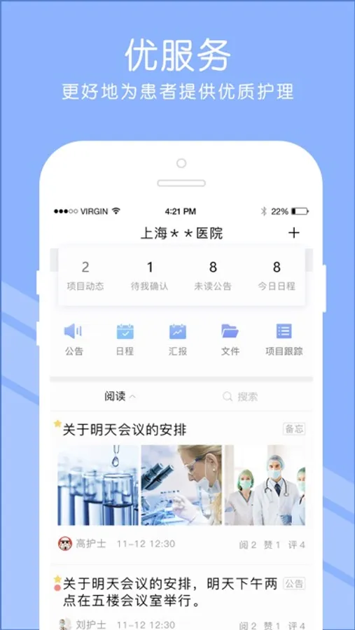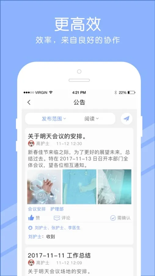 护理工作平台自带沟通体系,所有的工作协同一站式完成