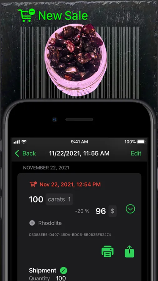 Simple and fast control of the goods You most often buy or sell. Add Items to Private Protected Collections. Add a Lot when You buy or offer for sale, and a Sale when You sell. Get a general report for all time for each product. Get the printed code to search. Original product barcodes are supported.