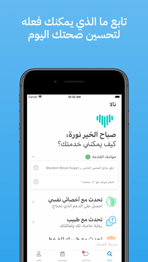 الصحة التكاملية تجمع بين علم السلوك والبروتوكولات الطبية، لتتمكن من متابعة صحتك بشكل استباقي، عبر متابعة أوتوماتيكية و استشارات طبية، من راحة منزلك.