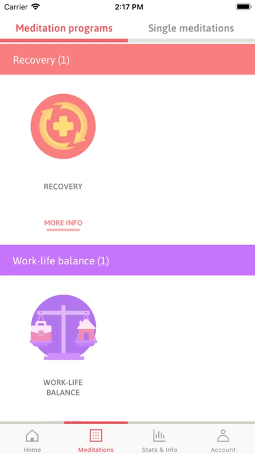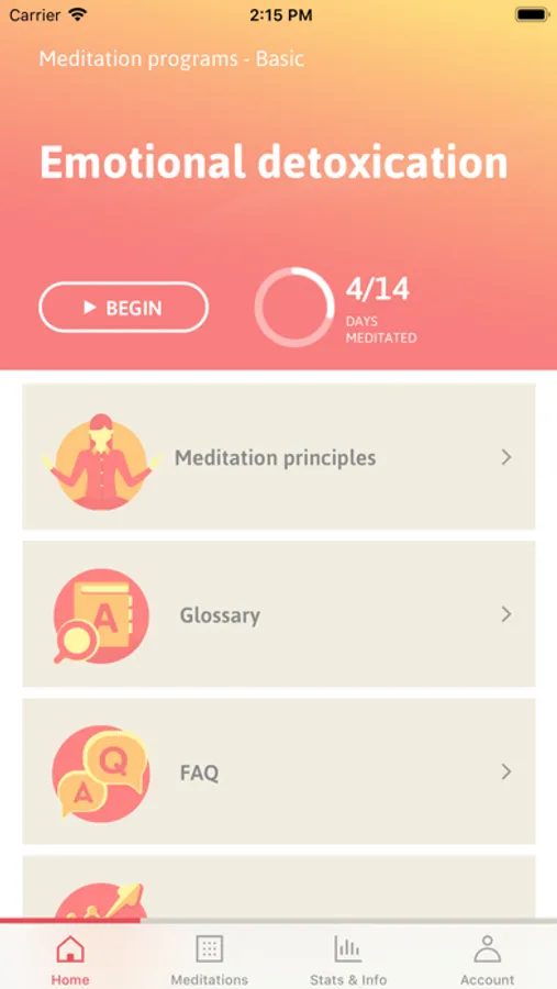 The App. also offers 38 different 5 min. meditations with very specific topics, suitable when you don’t have much time. Out of these 38 there are four 5 min. guided meditations free of charge dedicated to Stress relief, More Happiness, Sharpening focus and Sleeping better. There is much more than that under the subscription plan: Confidence, Decision making, Leadership mindset, Professional Affirmation, Career Development, Emotional Intelligence, Self-Compassion, etc.