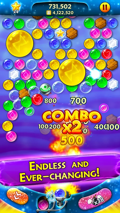 Beat your friends and make it to the top of the global leaderboards in this endless challenging and ever-changing bubble shooter game!
