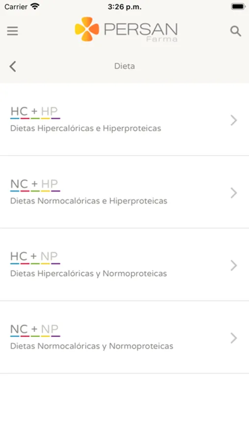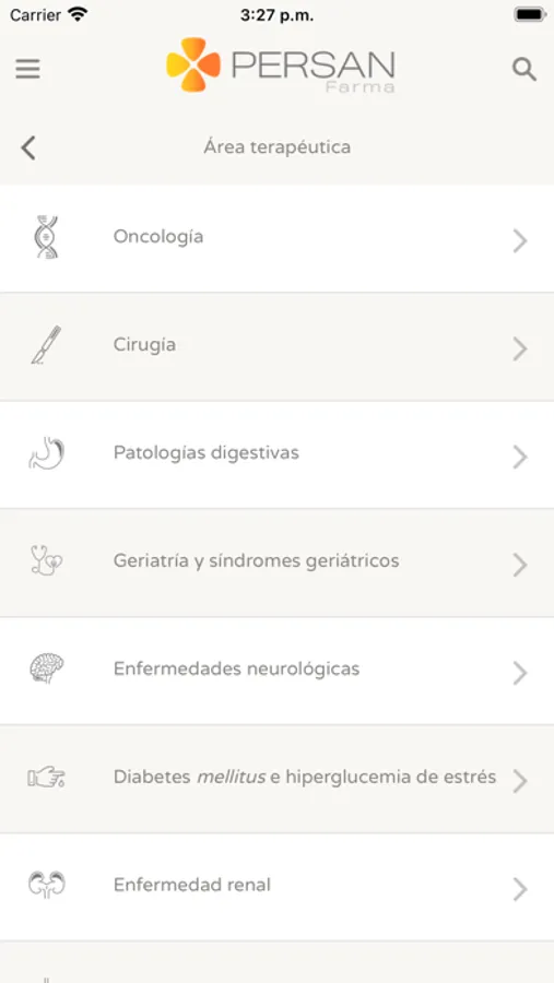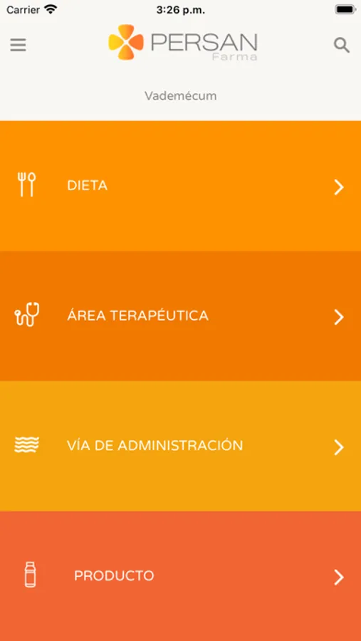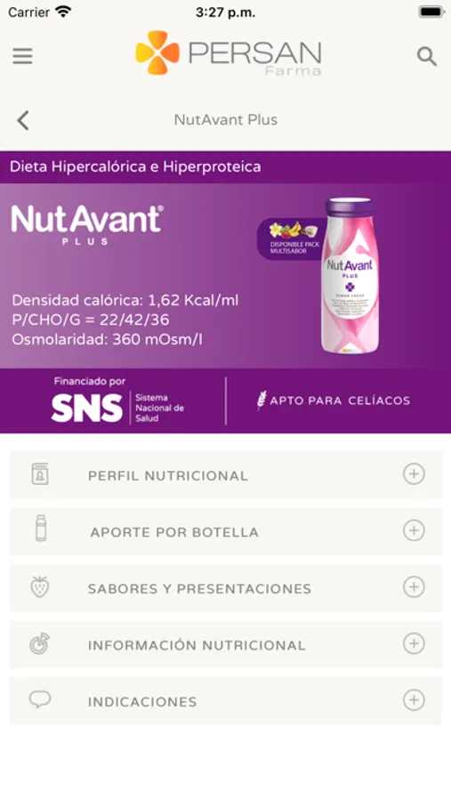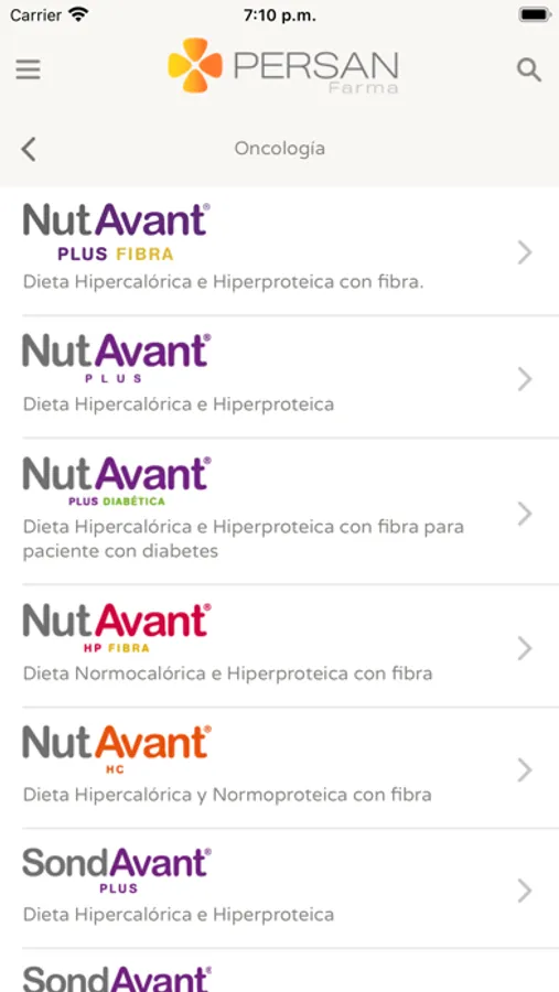 La app Vademécum de Persan Farma incluye información sobre su línea de nutrición enteral oral y su línea de nutrición enteral por sonda, así como una lista de áreas terapéuticas en relación con el tipo de soporte nutricional recomendado para el paciente.