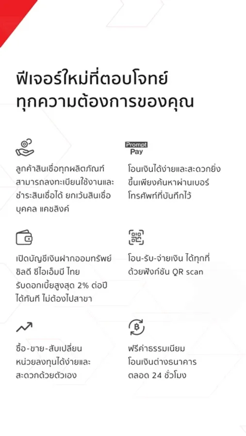 - Fund transfer via PromptPay.