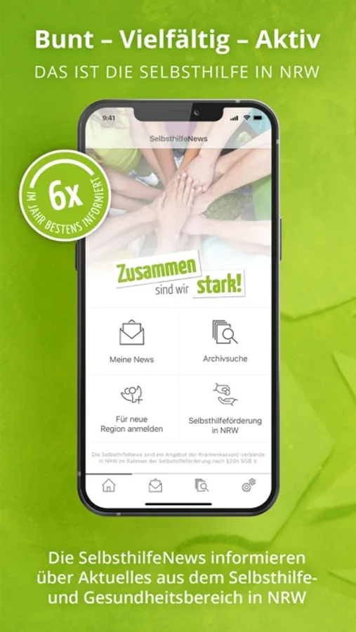 Die SelbsthilfeNews informieren alle Interessierten über aktuelle Themen aus dem Selbsthilfe- und Gesundheitsbereich in NRW. Betroffene, Angehörige und Engagierte können über die SelbsthilfeNews Kontakte zu den örtlichen Selbsthilfe-Kontaktstellen/-Büros und den Selbsthilfegruppen vor Ort finden.