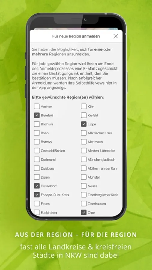 Bis auf wenige Ausnahmen nehmen alle Landkreise und kreisfreien Städte in NRW an dem Angebot teil und versenden sechs Mal jährlich aktuelle Informationen – aus der Region für die Region. Geschrieben werden die Newsletter von den Mitarbeiter:innen der örtlichen Selbsthilfe-Kontaktstellen/-Büros und den Selbsthilfegruppen vor Ort. Mit ihrem vielfältigen Themenfeldern stellen die SelbsthilfeNews so eine wichtige Informationsquelle für akut und chronisch Kranke sowie deren Angehörige, Mitglieder von Selbsthilfegruppen aber auch Arztpraxen und Beratungsstellen dar.