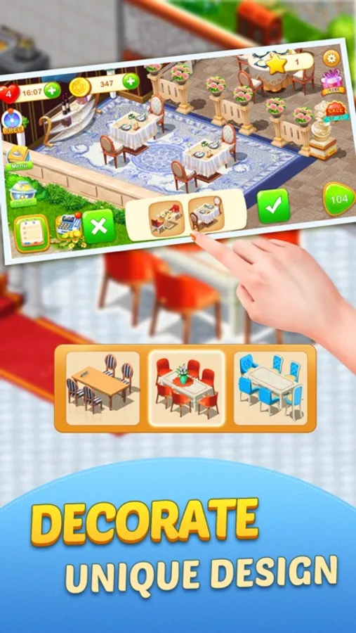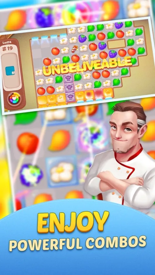 Fun gameplays: collect stars by clearing ingredients, then use them to decorate your restaurant.