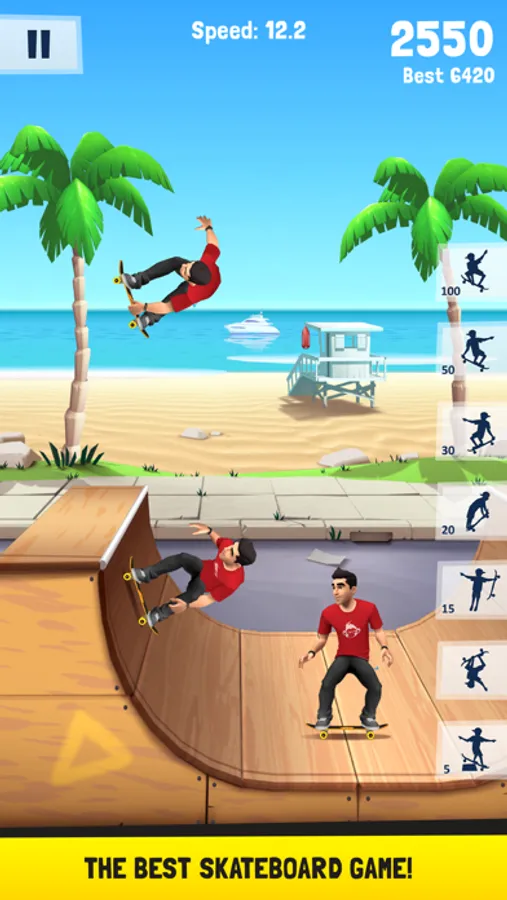 Travel the globe on the most amazing environments and leave your Skateboarder print all over the World! Do amazing tricks - Nose grabs, rocket airs, frontside airs - Beat the highest scores and show your mad skills to the World!