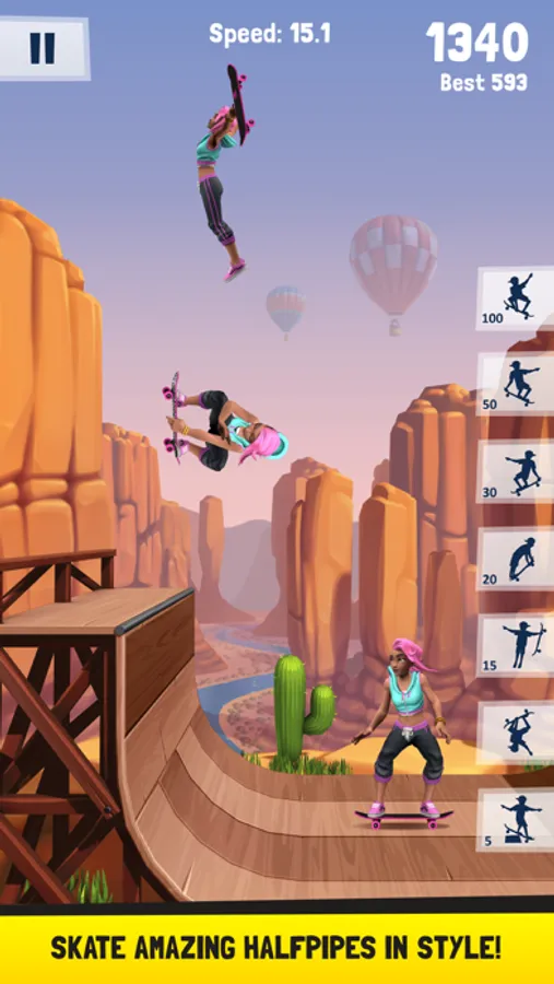 Choose your board and get ready for a thrilling ride on the Halfpipe! Slide down the ramps at high speed to reach outrageous heights and become the best Skateboarder on the Planet!