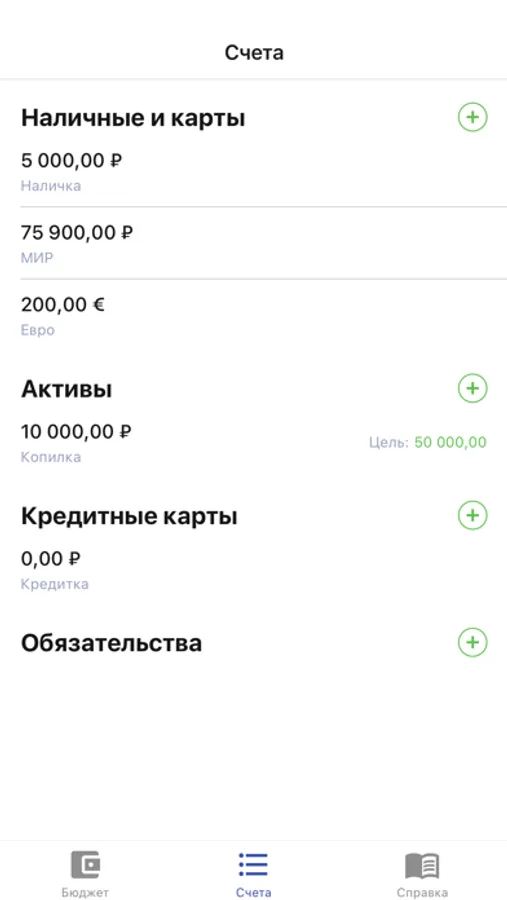 В “Капитале” все счета собраны в одном окне. Наличность, активы, обязательства, кредитки — всегда перед глазами